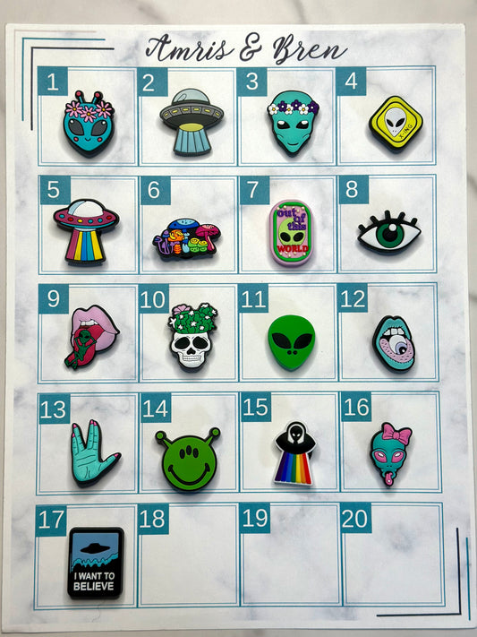 Alien themed charms for Crocs, Croc compatible clog charms, spaceship charm