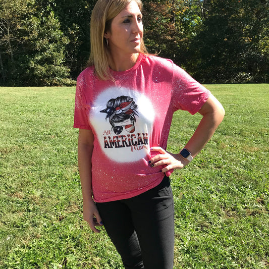 All American mama bleached t shirt, unisex bleached women’s shirt, trendy women’s t shirts, cute shirts,