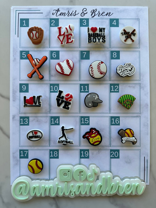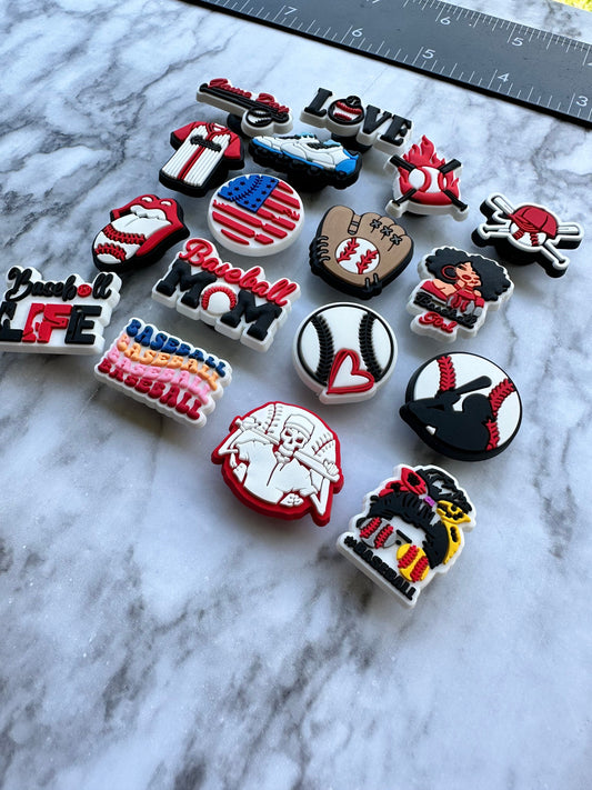 Baseball themed shoe charms, SOFTBALL croc compatible shoe charms, baseball charms, bat charms, popular baseball clog charms