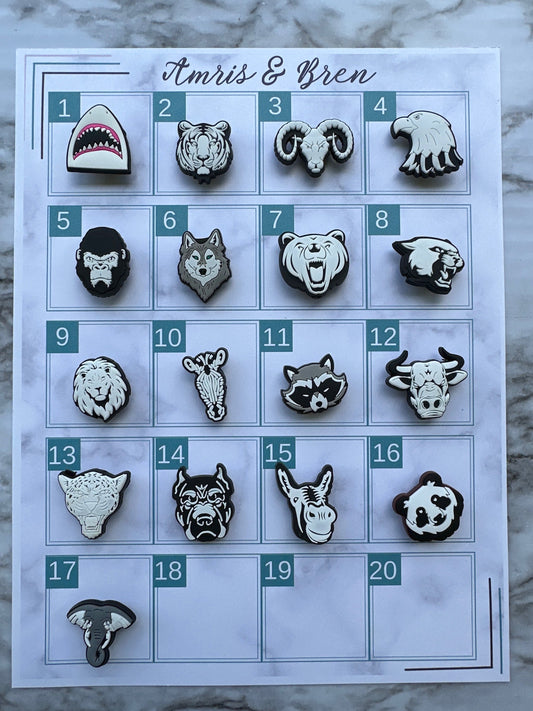 animal charms for crocs, mascot shoe charms, black and white animal charms, croc compatible charms, shoe charms for your crocs