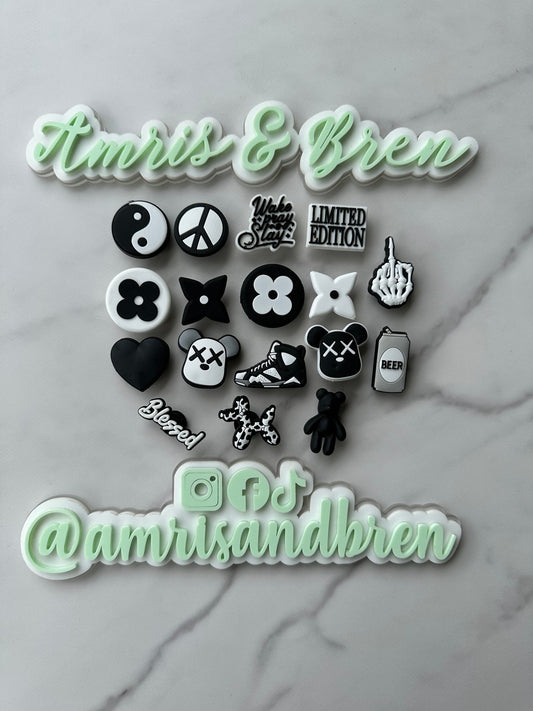 BLACK AND WHITE Croc compatible clog charms, Charms for your crocs, Shoe charms for crocs, clog charms