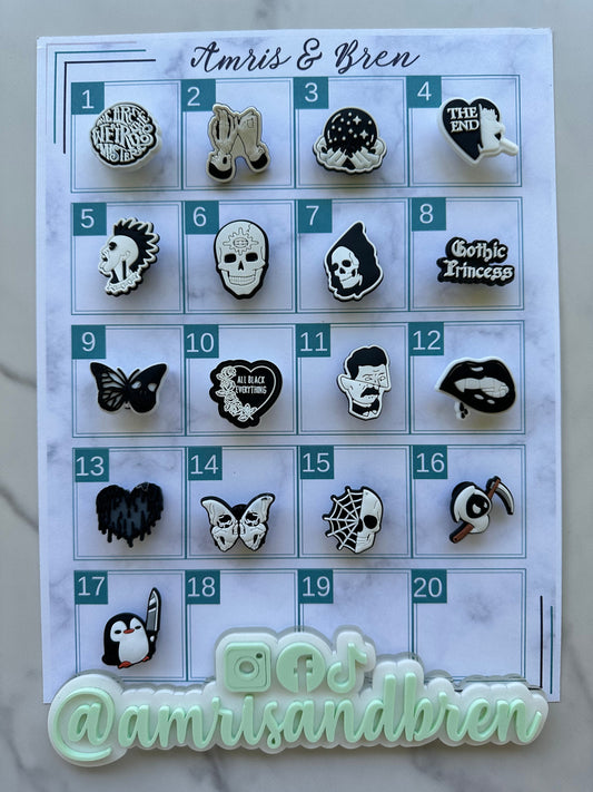 Black and white gothic croc compatible charms, GOTHIC PRINCESS charms for your crocs, skull charms,