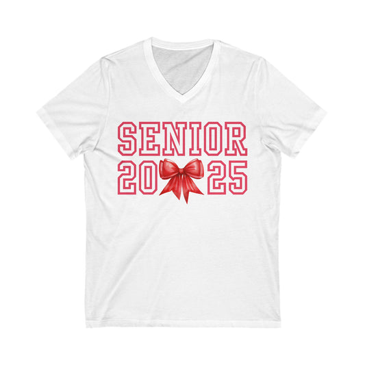Graduation 2025 Unisex V-Neck Tee with Red Font and Bow