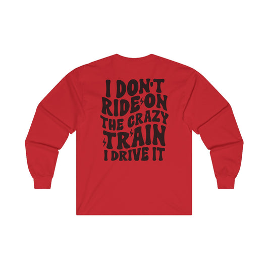 Funny Long Sleeve Tee for Women - 'I Don't Ride the Crazy Train, I Drive It'