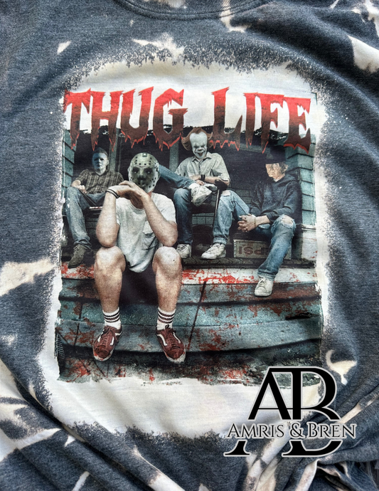 Thug Life horror film character soft style t-shirt, Sublimation t shirt with horror movie characters, bleached tee