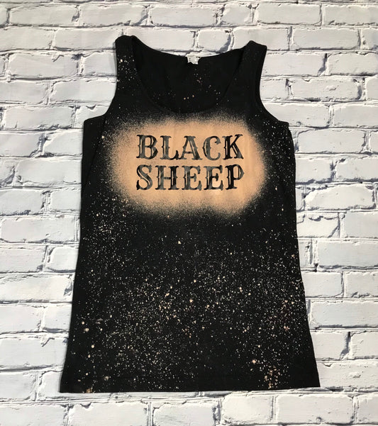 Women's black distressed and bleached tank top, Women's size large black sheep tank top, Perfect gift for the black sheep of the family