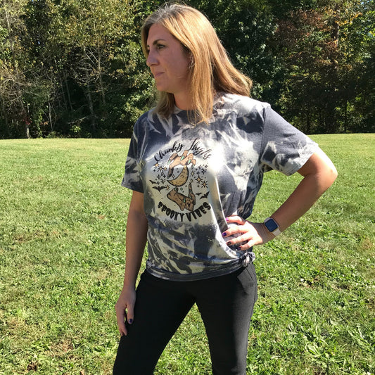 Thick Thighs Spooky Vibes Shirt, Unisex Halloween Shirt, Women's bleach tee's, Bleached tie dye shirt, trending shirts for women