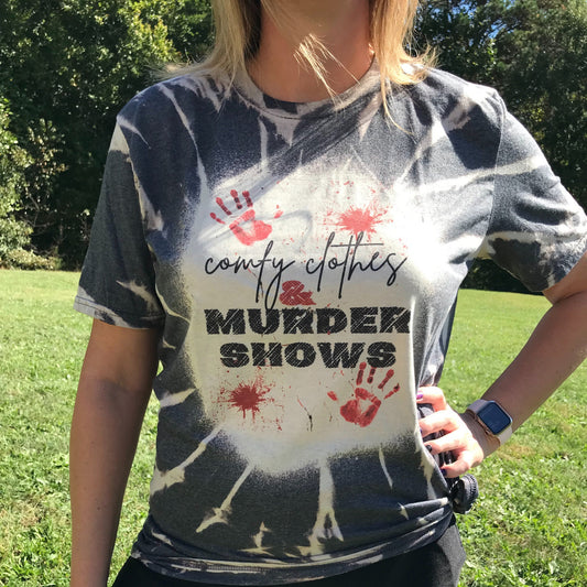 Unisex Comfy Clothes & Murder Shows Bleached Tie Dye Shirt, Gifts for Murder show Lover, True Crime Junkie Shirt