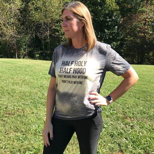Women's Unisex sizing half hood half holy bleached t shirt, Most popular shirts, Best Birthday Gifts, Unique Shirts