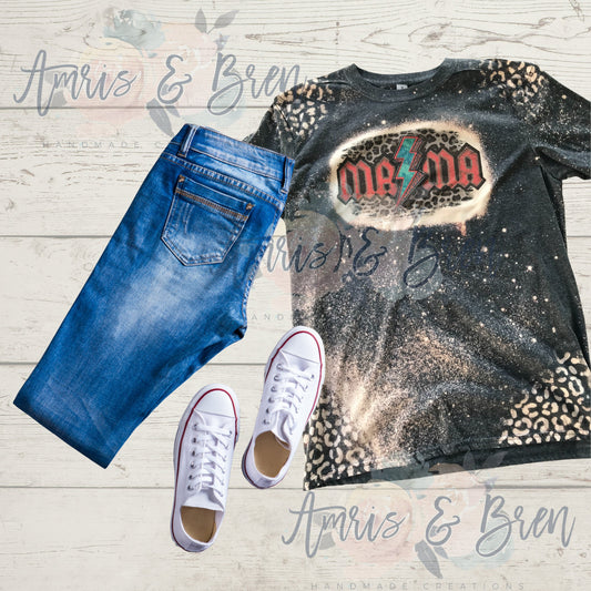 leopard and lightning bolt mama bleached sublimation t shirt, gifts for new mom, popular mom t shirts, trending tee's