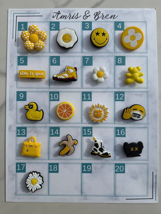 Yellow and Orange themed shoe charms for Crocs, Croc compatible shoe charms