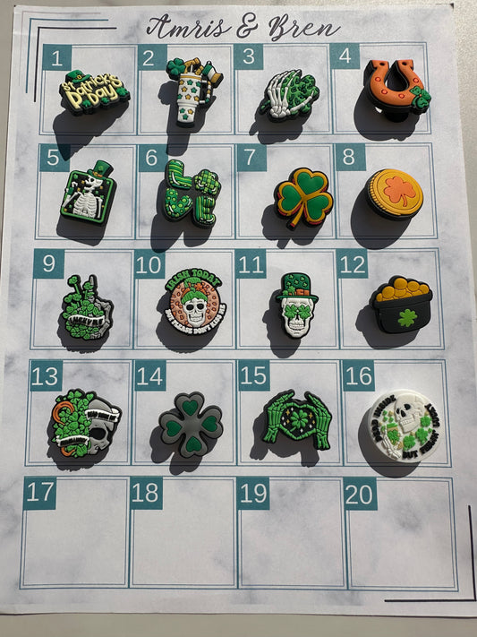 Croc compatible St. Patricks day Shoe charms, Green and gold themed charms for Crocs,