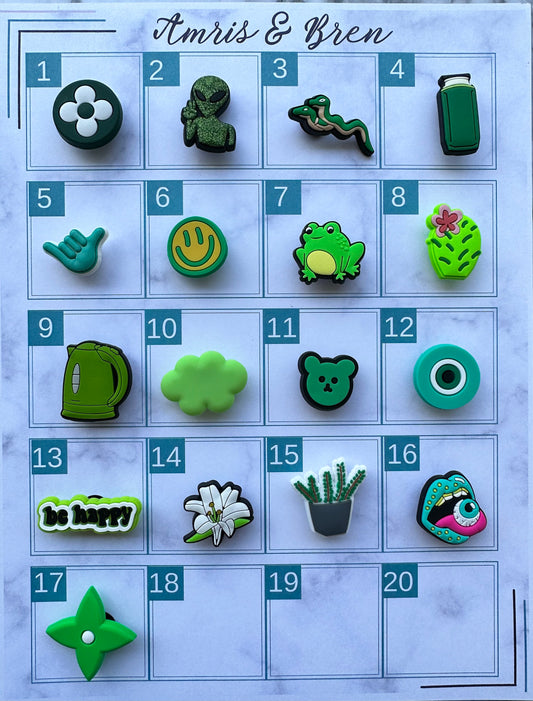 Green themed shoe charms, croc compatible shoe charms, green bear shoe charms, cactus charms, green evil eye charms