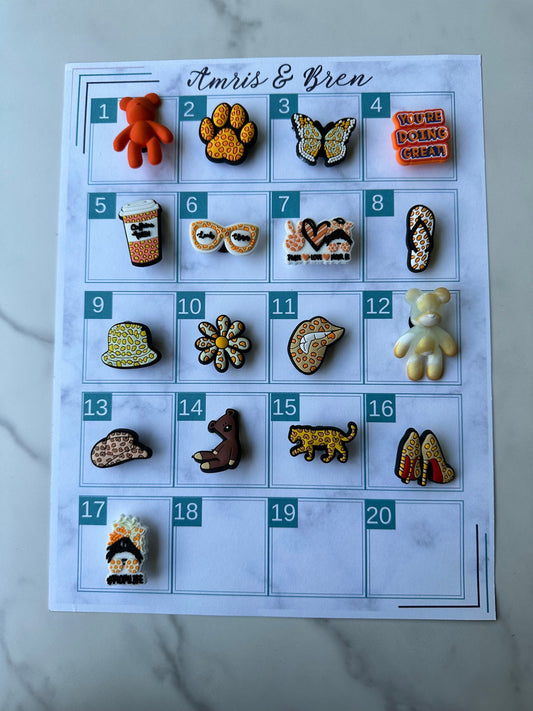 Orange themed shoe charms, croc compatible shoe charms, orange bear shoe charms, orange cheetah print charm, orange butterfly, leopard print