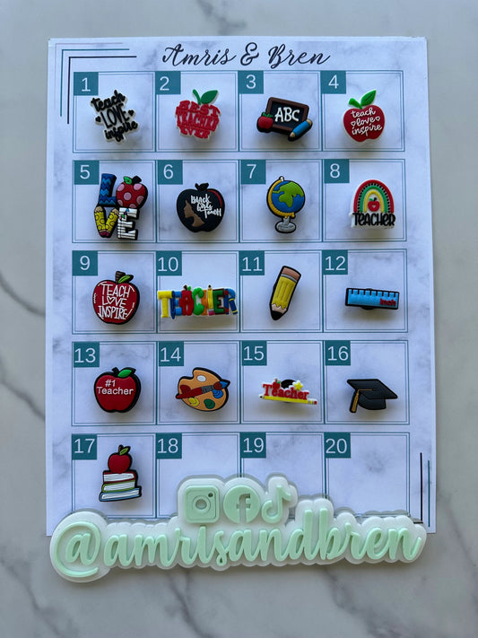 croc compatible shoe charms for teachers, popular clog compatible charms, charms for your crocs, teacher charms for shoes, trending charm