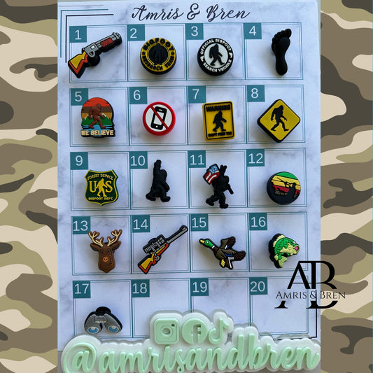 Hunting themed Croc compatible shoe charms, charms for crocs, Bigfoot shoe charms, shoe charm decor, DIY custom crocs