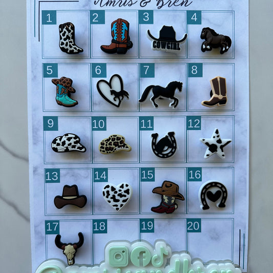 new western croc compatible charms, cowgirl shoe charms for crocs, cowboy hat charms, boots and hat shoe charms for Crocs, horse charms