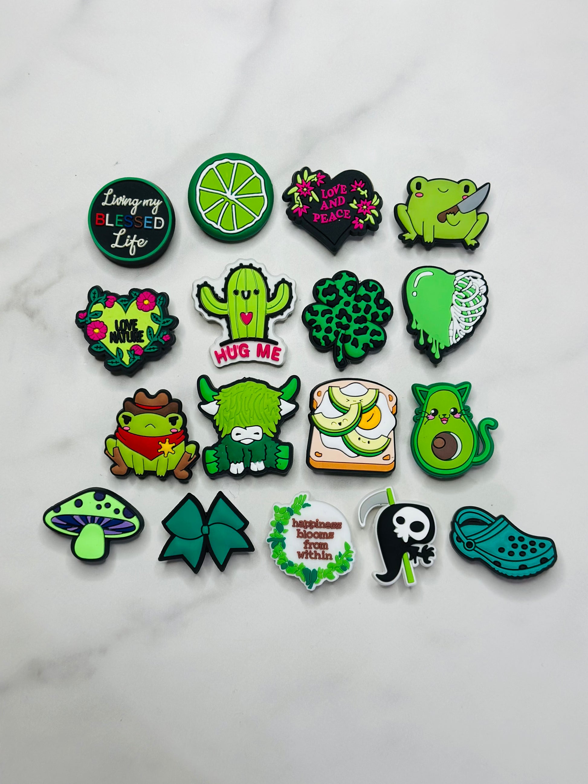 Whimsical Green Croc compatible Charms – Choose Individual Styles Like Frogs, Quotes, Avocados, Cactus, & More