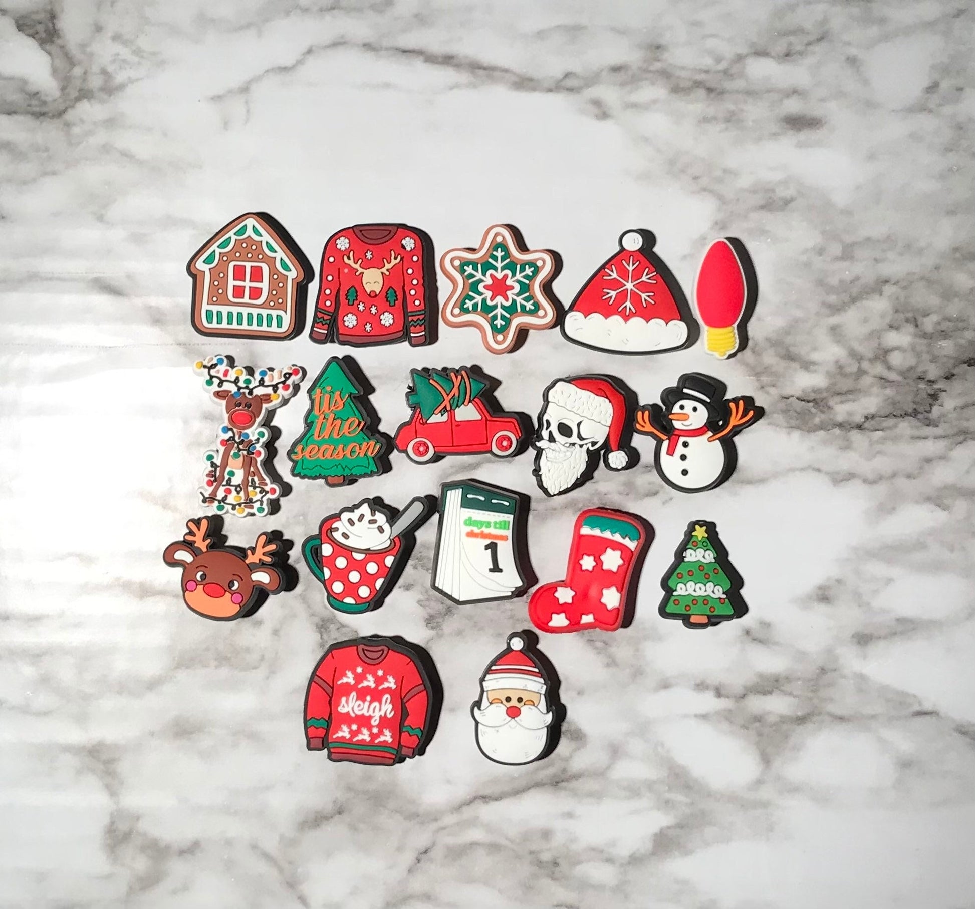New Christmas themed shoe charms for your crocs, red and green holiday croc compatible charms